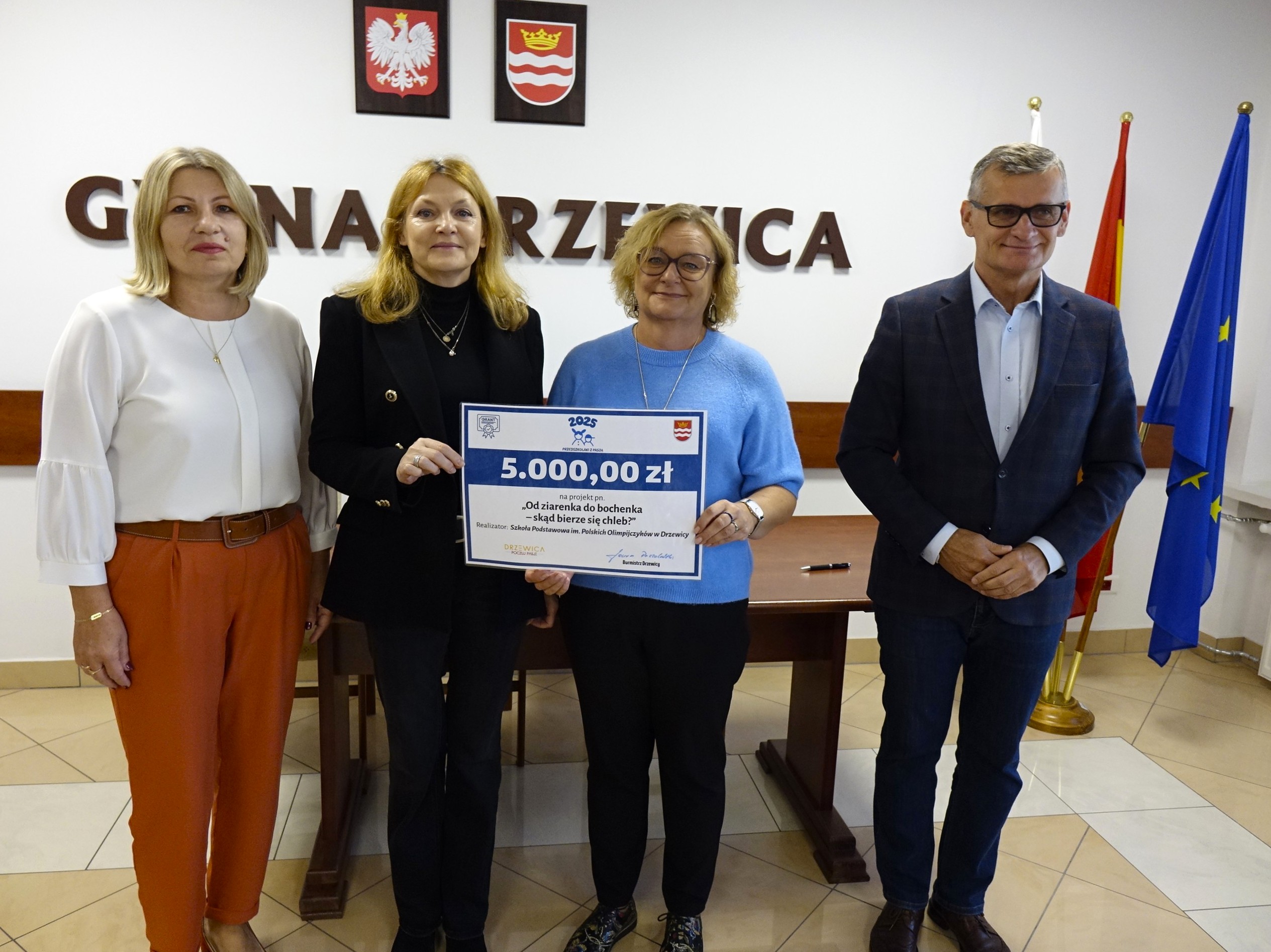 Autorzy i realizatorzy zwycięskich zadań zostali zaproszeni do Urzędu Miejskiego w Drzewicy na spotkanie z gminnymi władzami samorządowymi, reprezentowanymi przez Burmistrza Drzewicy Janusza Reszelewskiego oraz Dyrektor Zespołu Ekonomiczno-Administracyjnego Szkół Małgorzatę Kuchenbecker.