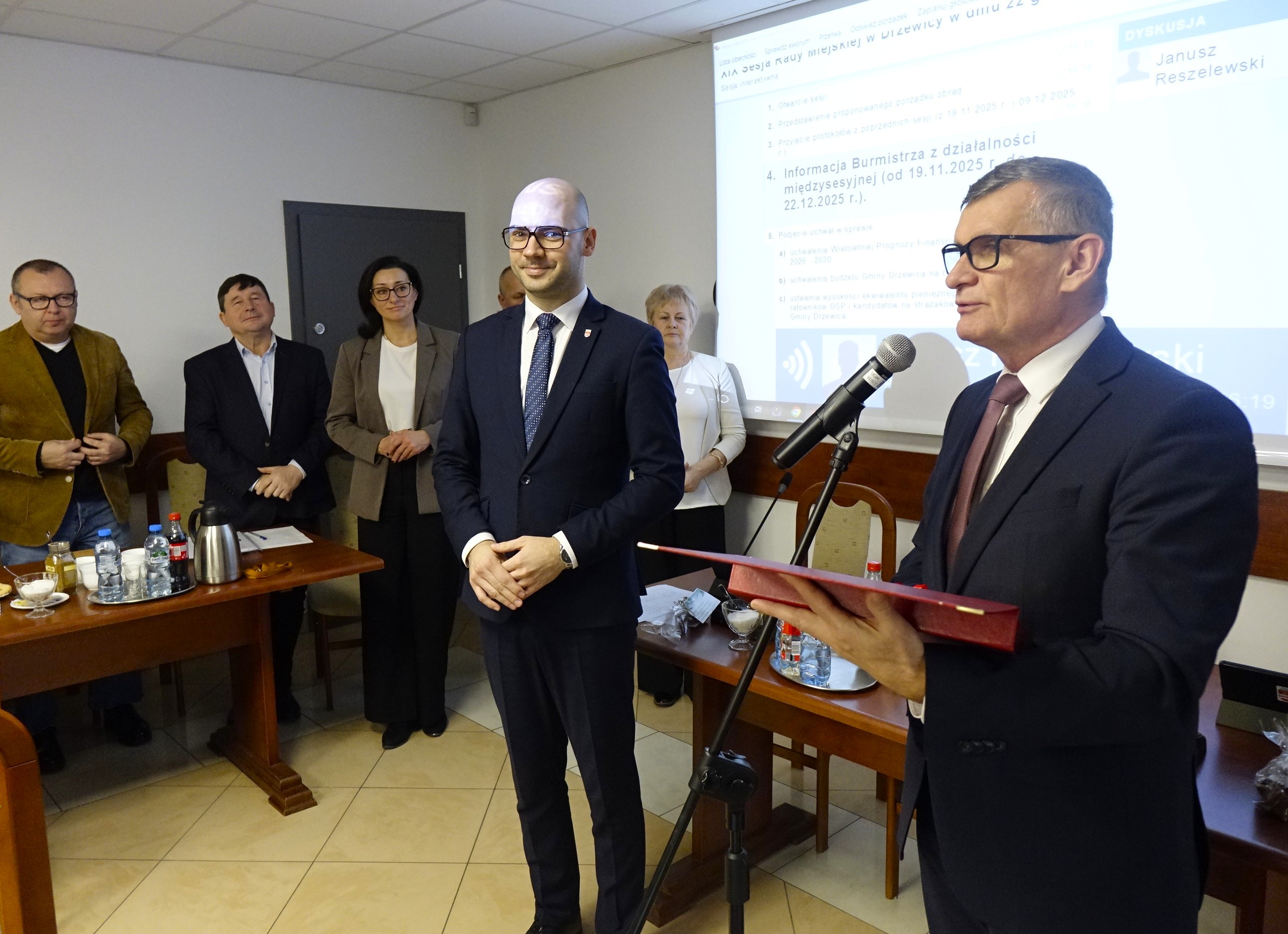 Pierwsza część posiedzenia z udziałem 15 radnych stała pod znakiem informacji Burmistrza Drzewicy z działalności międzysesyjnej. Obszerne sprawozdanie, obejmujące okres od 19 listopada do 22 grudnia 2025 r., dotyczyło całego spektrum działalności gminnego samorządu.