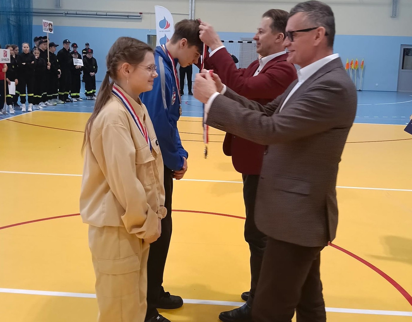 Starty młodych strażaków oklaskiwali w Opocznie Prezes Zarządu Oddziału Miejsko-Gminnego Związku OSP RP w Drzewicy - Burmistrz Drzewicy Janusz Reszelewski oraz Gminny Komendant Związku OSP RP w Drzewicy Marian Kalużny, którzy podczas uroczystej dekoracji wręczyli druhnom z Domaszna medale, statuetki oraz dyplomy. Nasi reprezentanci odebrali również pakiety gminnych gadżetów.