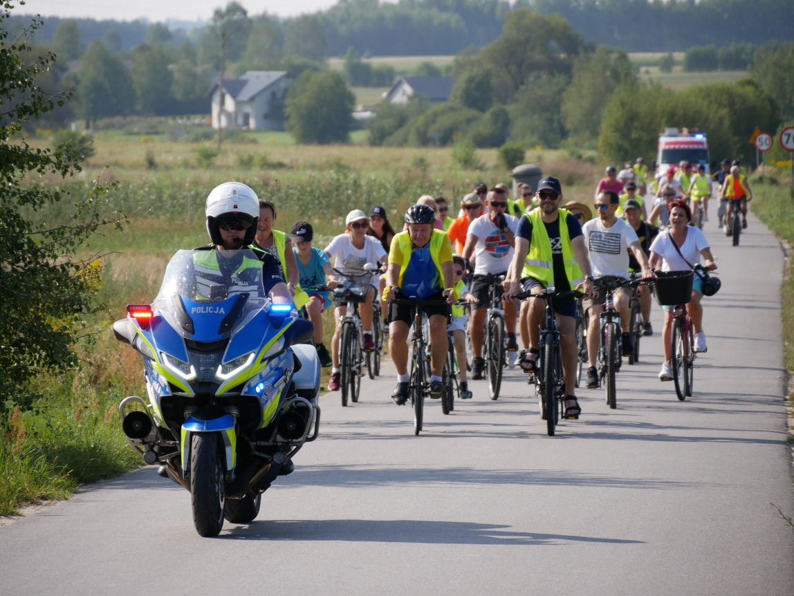 Następnie grupa kolarzy w asyście funkcjonariuszy policji Komendy Powiatowej Policji w Opocznie oraz strażaków z OSP Dąbrówka wyruszyła na trasę rajdu. Rowerzyści pokonali trasę o długości około 28 km wiodącą przez miejscowości: Dąbrówka, Radzice Małe, Brzuza, Giełzów, Trzebina, Krzczonów, Jelnia, Radzice Duże, Werówka, Strzyżów. Po dotarciu na metę, która była zlokalizowana na terenie Ośrodka Sportu i Rekreacji w Drzewicy, Zastępca Burmistrza Dominik Niemirski podziękował za udział w rajdzie oraz z pomocą Edyty Bartos Prezes Centrum Aktywności Lokalnej w Drzewicy rozlosował upominki dla uczestników.