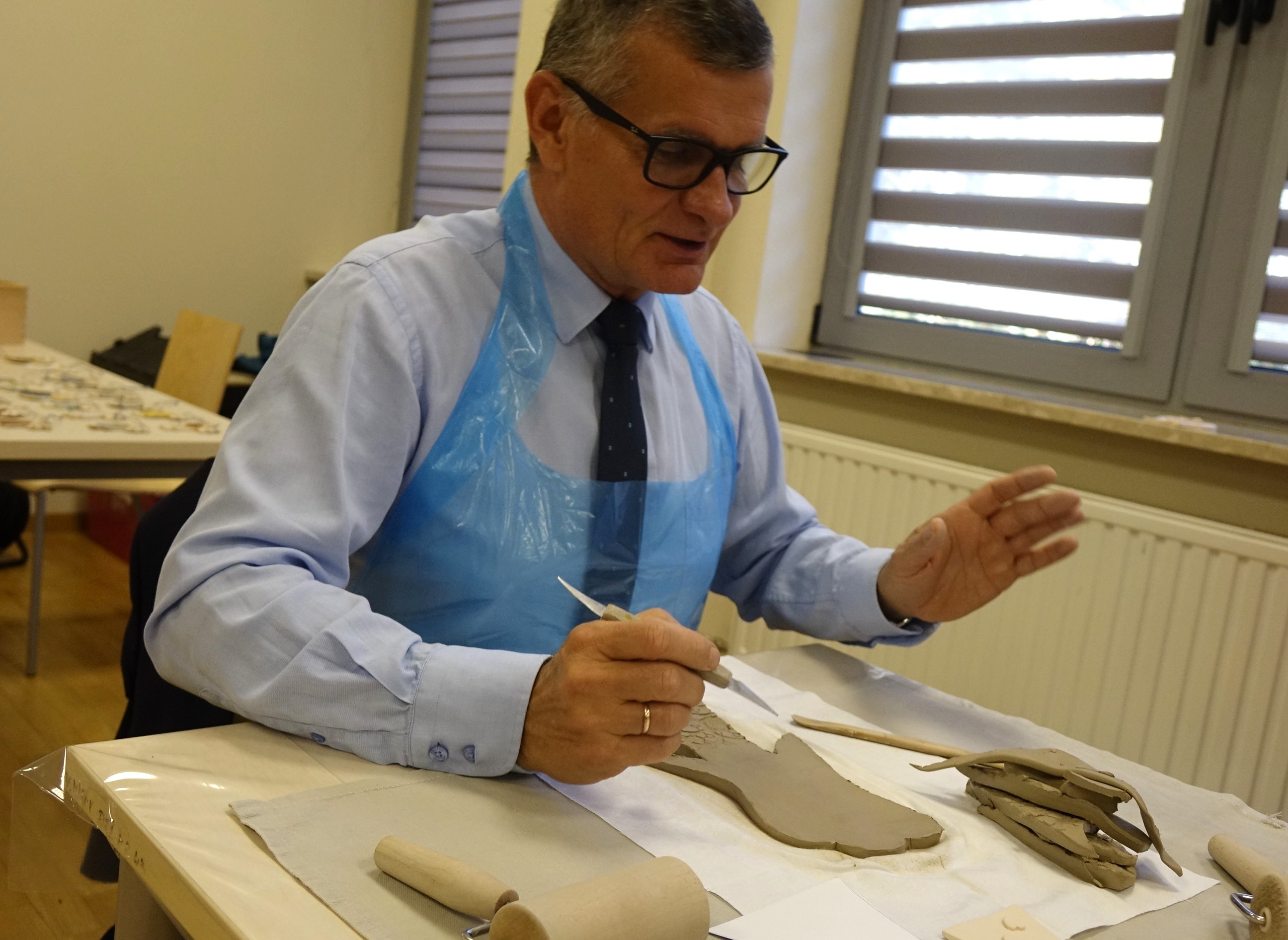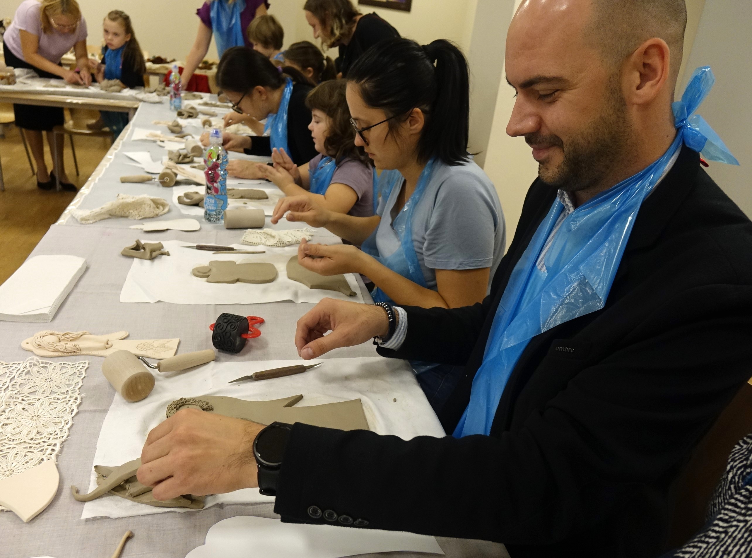 Artystyczną część spotkania stanowiły natomiast warsztaty rękodzieła ceramicznego zorganizowane przez Zakład Aktywności Zawodowej Stowarzyszenia Integracyjnego "Klub Otwartych Serc" z Wieruszowa. Wspólnie z dzieciaczkami i ich rodzicami w zajęciach uczestniczyli zaangażowani w promocję Karty samorządowcy szczebla wojewódzkiego i gminnego: Członek Zarządu Województwa Łódzkiego Artur Ostrowski, Burmistrz Drzewicy Janusz Reszelewski, Zastępca Burmistrza Drzewicy Dominik Niemirski oraz Wiceprzewodnicząca Rady Miejskiej w Drzewicy Joanna Popis.
