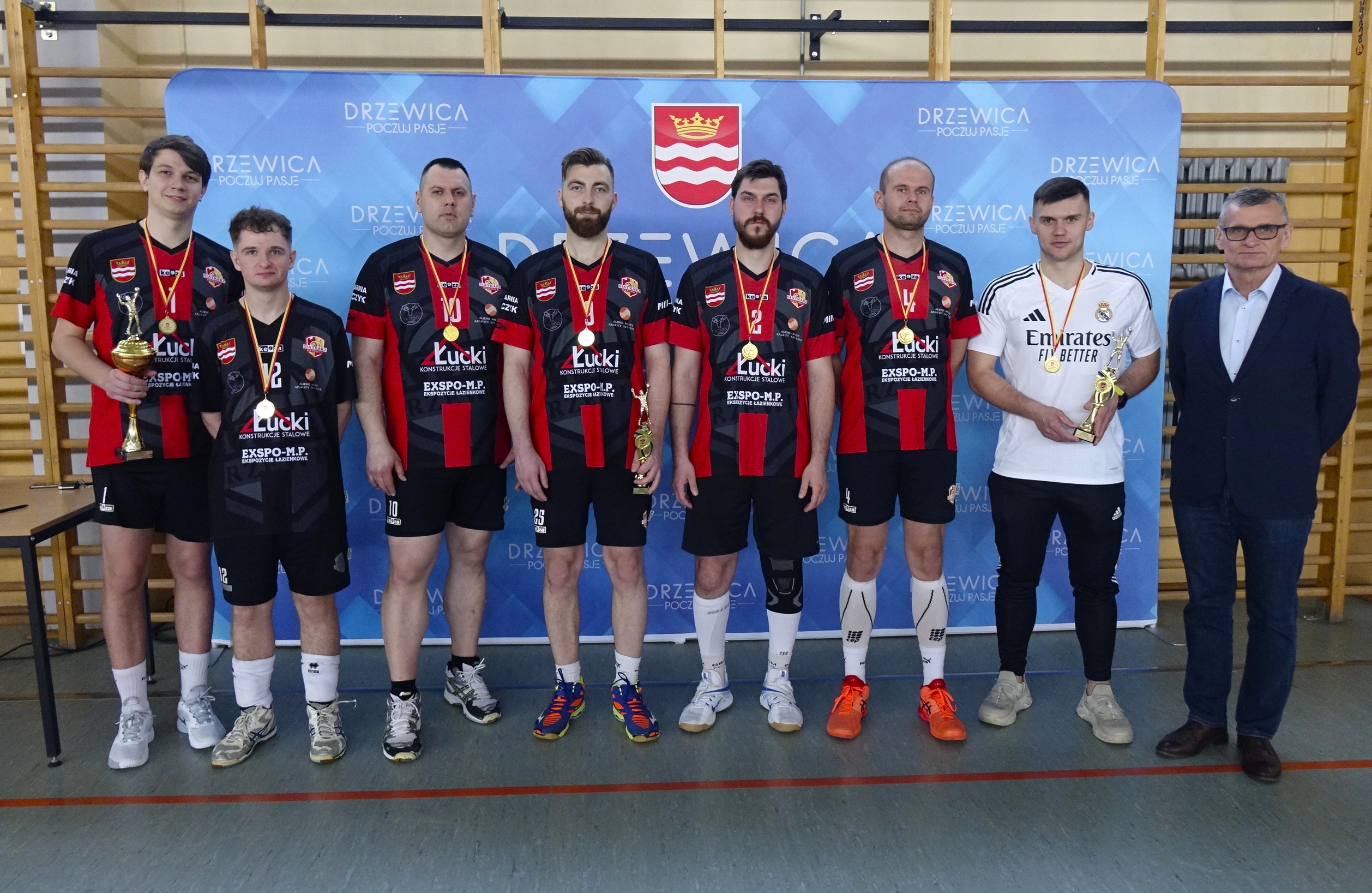 LZS Siatkarz Drzewica: Michał Woźniak, Mariusz Skrętowski, Patryk Woźniak, Paweł Krzyżanowski, Adam Woźniak, Filip Seta, Bartłomiej Senator, Dominik Raczyński.
