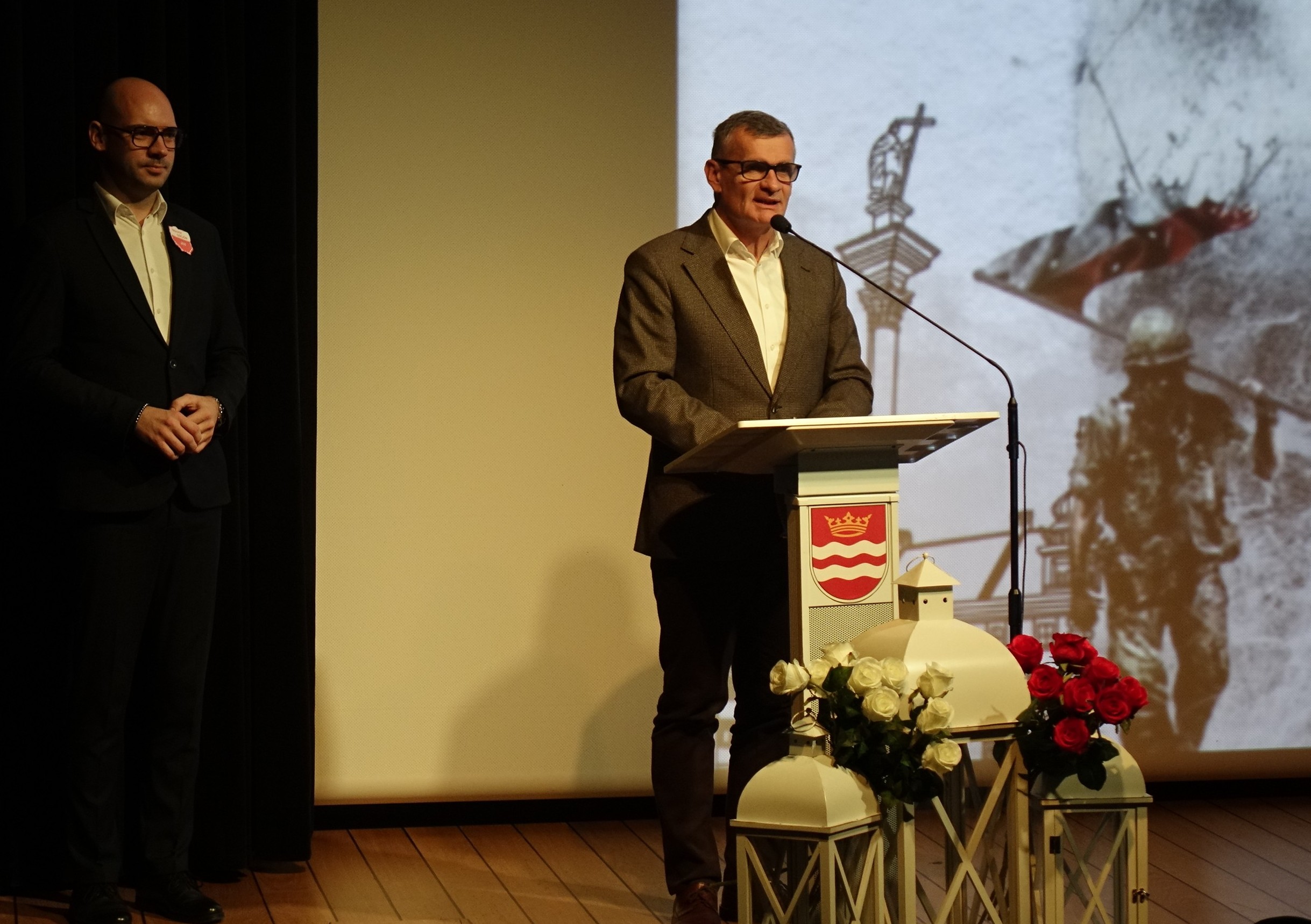 Spotkanie w sali widowiskowej RCK rozpoczęło się od poruszającego filmu prezentującego wspomnienia panów Antoniego Kmity i Henryka Kwietnia z czasów II wojny światowej.
