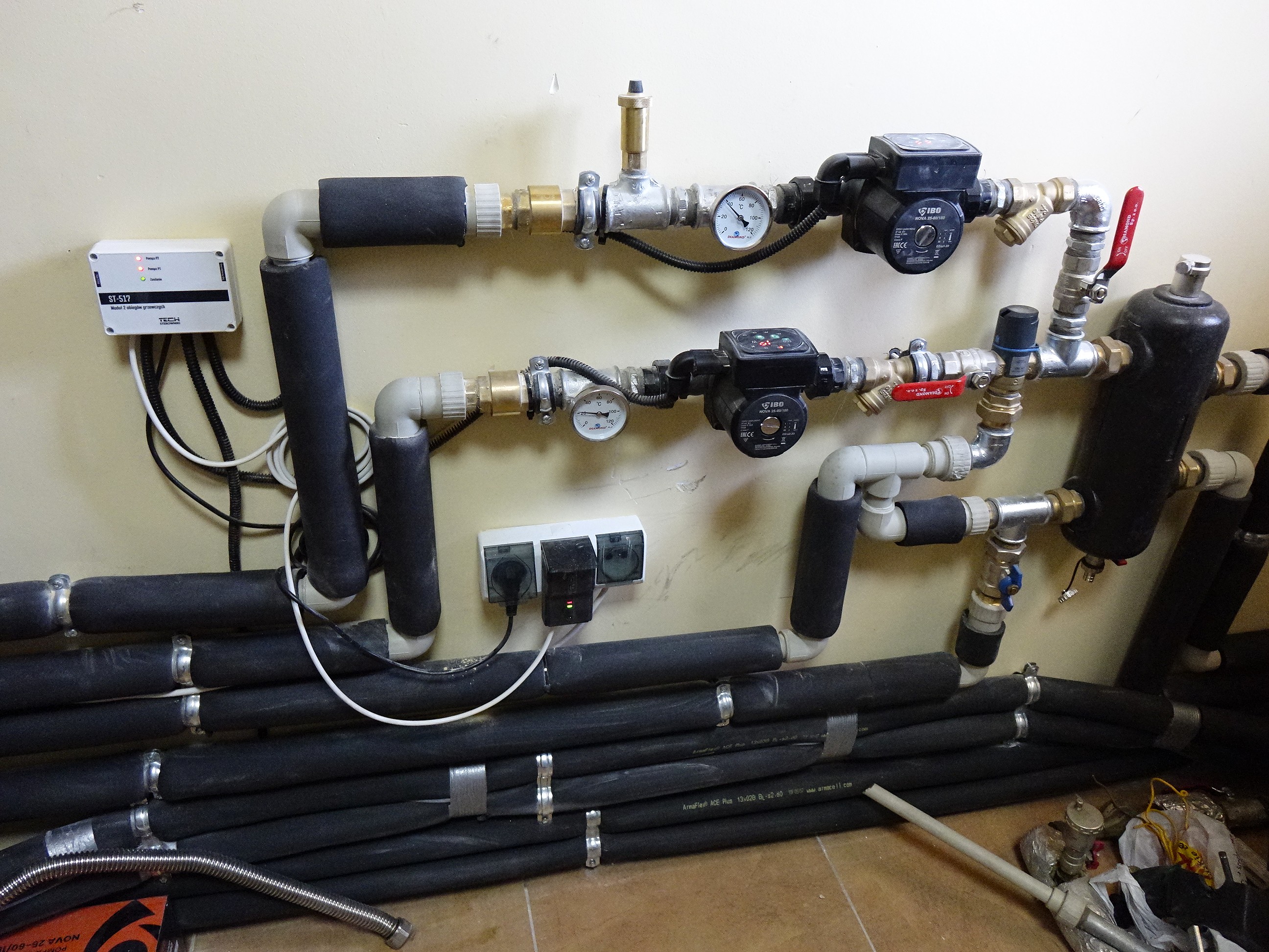 - montaż wewnętrznej instalacji gazowej z kotłem grzewczym o mocy max. 30 kW wraz z kompletem oprzyrządowania, w tym wszystkimi niezbędnymi pompami,
