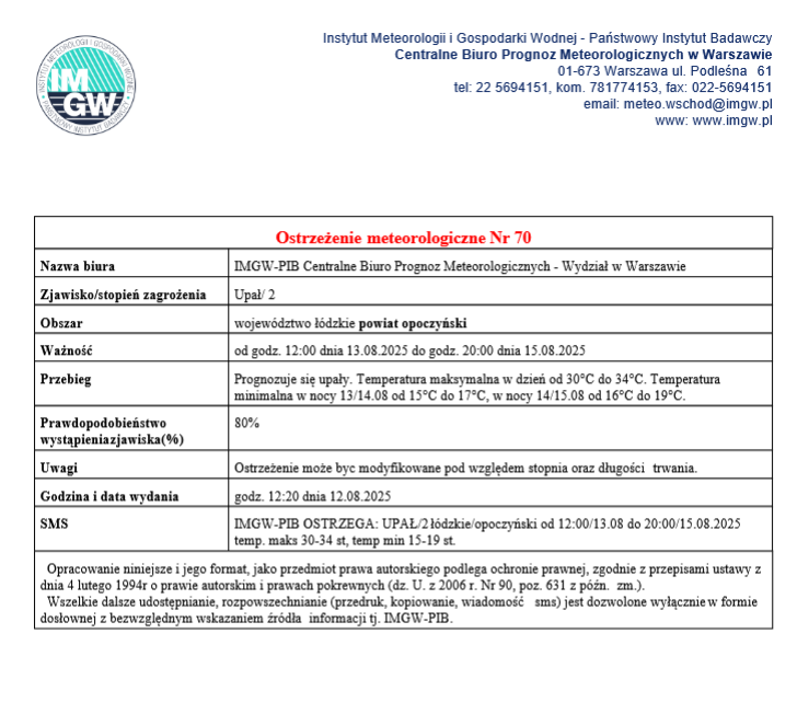 13.08.2025 Do pobrania Zalecenia dla powiatu opoczyńskiego - upał [ 662.34 KB ,08 ] Pobierz Udostępnij: FacebookDrukujPDF