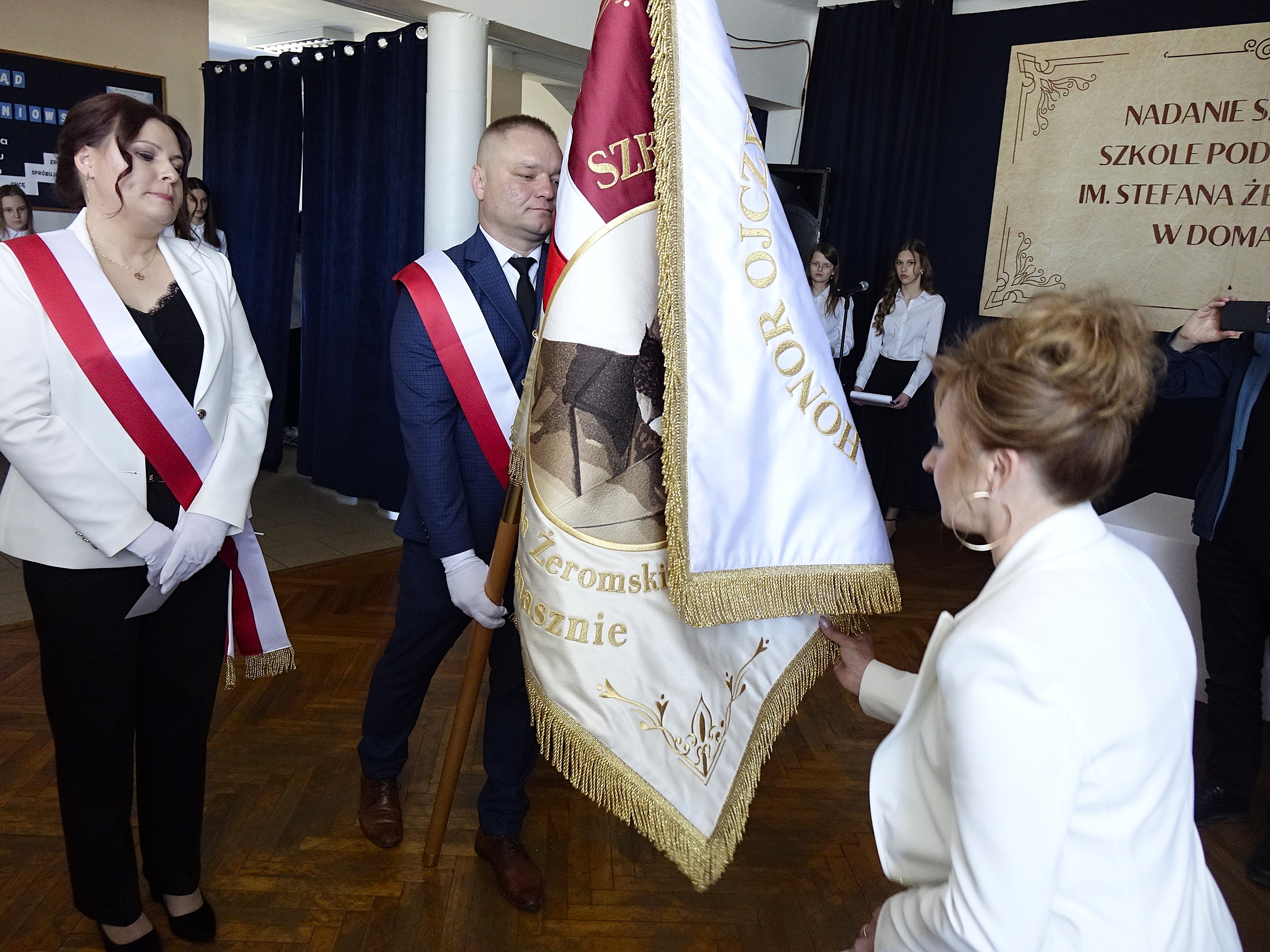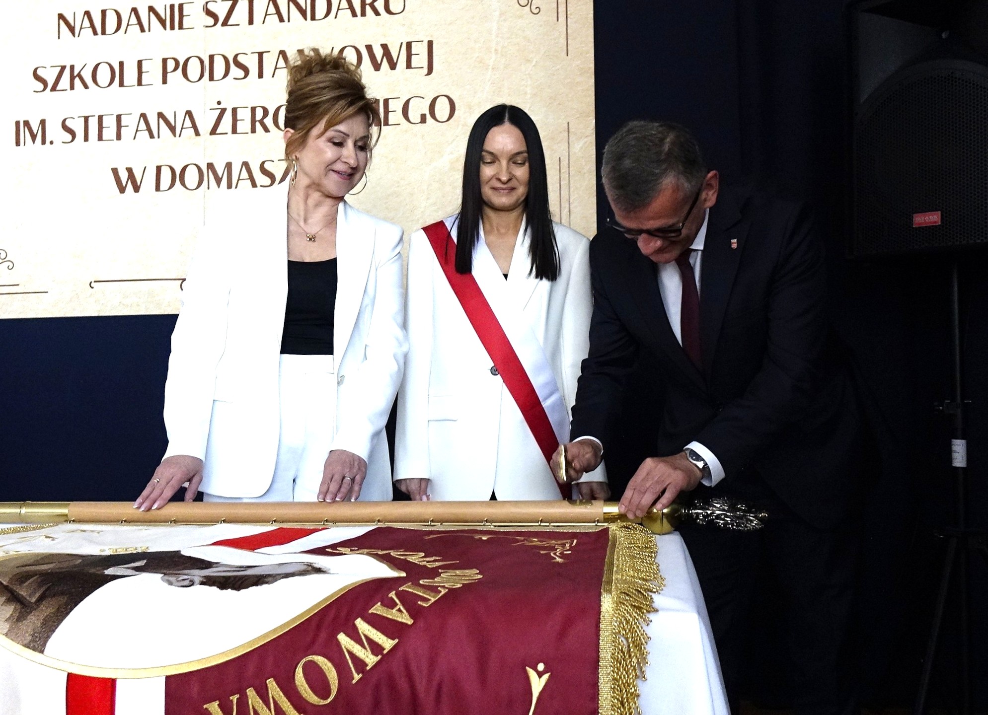 Data 22 kwietnia 2026 roku zapisze się złotymi zgłoskami w dziejach Szkoły Podstawowej im. Stefana Żeromskiego w Domasznie. Tego dnia nastąpiło uroczyste poświęcenie i przekazanie pierwszego w historii szkoły sztandaru.