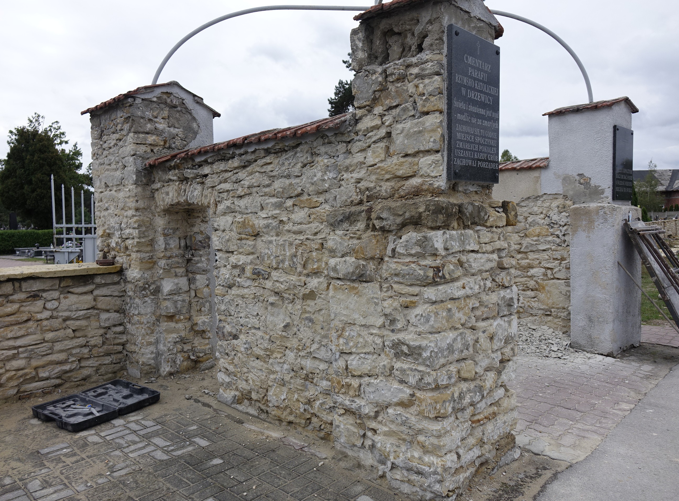 Na końcowym etapie wykonawstwa znajduje się „Remont ogrodzenia cmentarza parafialnego w Drzewicy". To kolejna inwestycja parafii pw. św. Łukasza w Drzewicy, realizowana z pozyskanym przez Gminę Drzewica dofinansowaniem ze środków Rządowego Programu Odbudowy Zabytków.