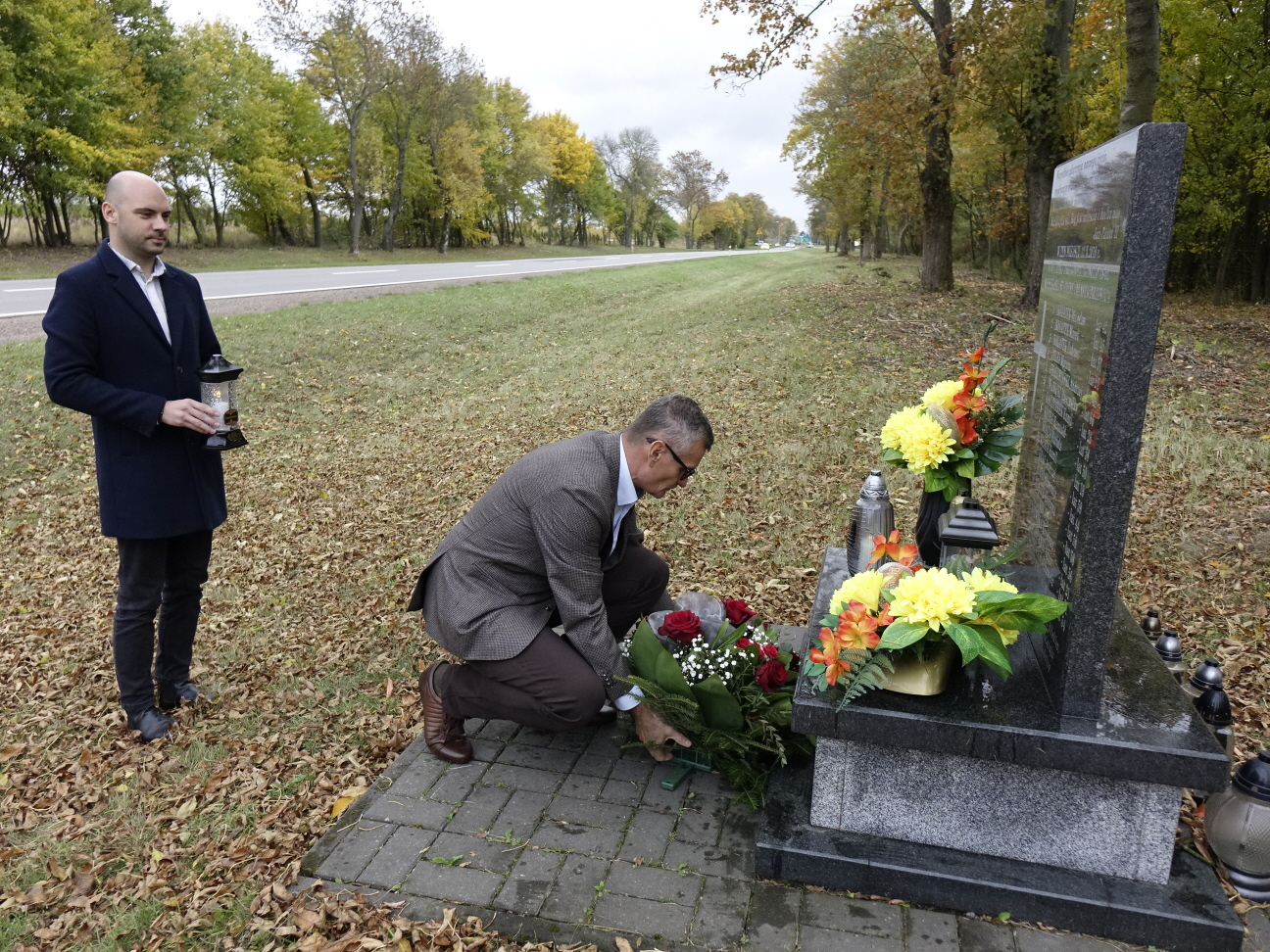 Pod tablicą z nazwiskami ofiar wypadku oraz cytatem Św. Jana Pawła II ("Wszystkie zdarzenia naszego życia wypływają z faktu, że Ojcem naszym jest Bóg. Nie płaczcie, ale módlcie się. Nie lękajcie się, Bóg jest miłością i kocha nas") samorządowcy złożyli wiązankę kwiatów oraz zapalili symboliczne znicze. Po modlitwie pamięć zmarłych uczcili minutą ciszy.