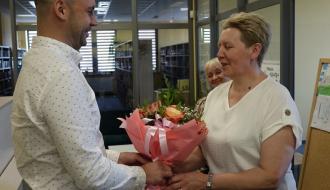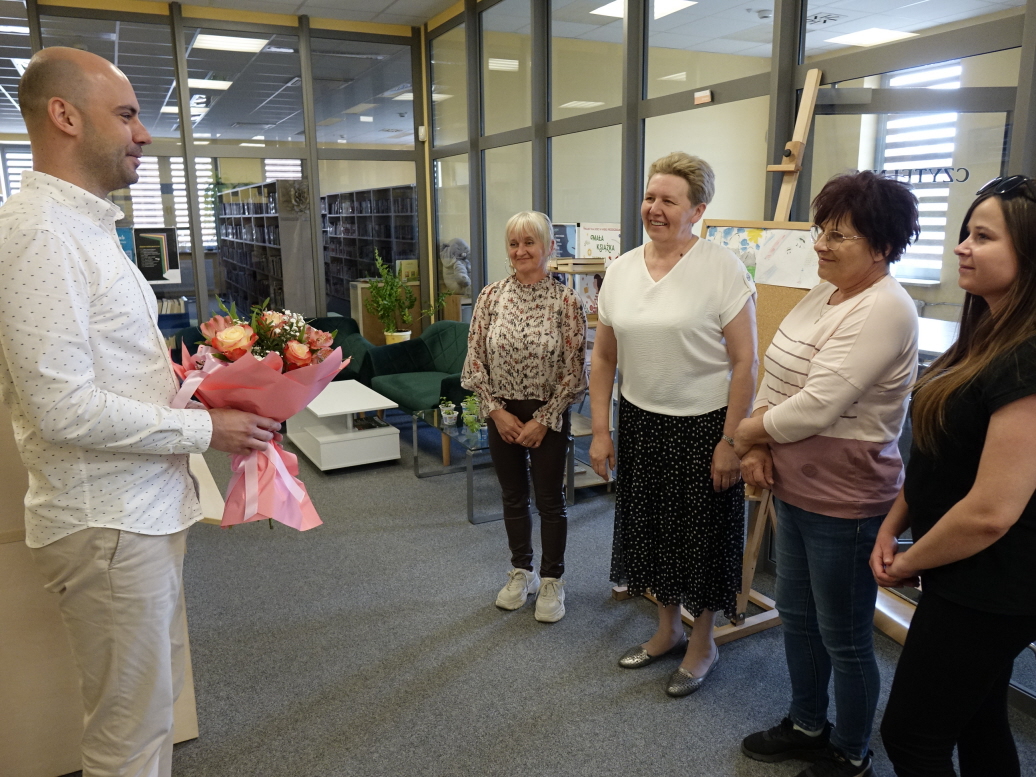 Zastępca Burmistrza przekazał również życzenia dalszej pasji w pracy, wytrwałości oraz nowych, twórczych pomysłów, które przyczyniają się do stałego wzrostu liczby czytelników oraz wzbogacania zbiorów biblioteki.
