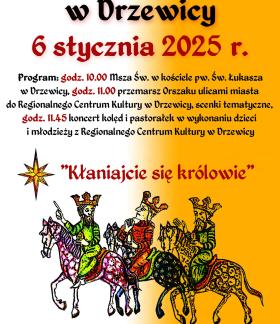 W świąteczny poniedziałek, 6 stycznia 2025 roku odbędzie się VIII Orszak Trzech Króli w Drzewicy pod hasłem "Kłaniajcie się…