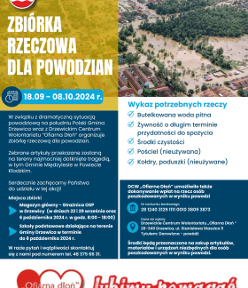 Burmistrz Drzewicy zachęca do udziału w zbiórce środków rzeczowych dla rodzin i osób objętych dramatyczną sytuacją powodziową na…