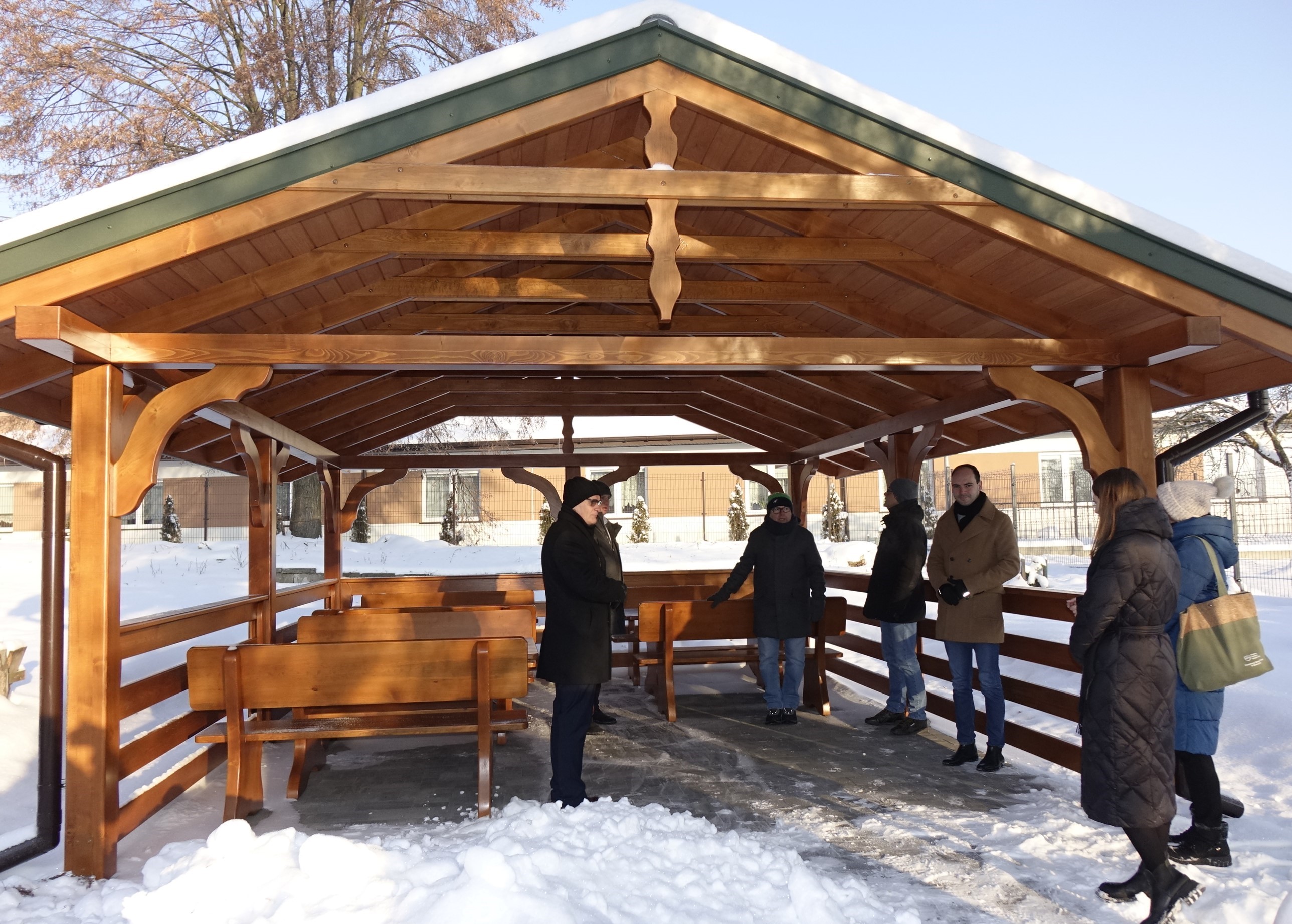Na placu za budynkiem mieszczącym Dzienny Dom Senior + i Warsztat Terapii Zajęciowej w Drzewicy stanęła duża, efektownie się prezentująca altana ogrodowa. Jej budowę zrealizowano w ramach inicjatywy „Granty Obywatelskie”.