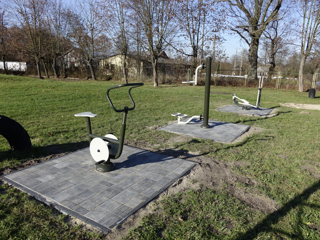 Przy SP w Radzicach Dużych zamontowane zostały: orbitrek, rower, jeździec, narty oraz twister. Pod każdym z urządzeń wykonano podbudowę i nawierzchnię z kostki brukowej. Przy obiekcie pojawiła się także tablica informacyjna z regulaminem. Na zlecenie Gminy Drzewica inwestycję wykonała firma Fit-Park z Torunia. Wartość zadania wyniosła 23.517,60 zł, przy współfinansowaniu w ramach programu „Sołectwo na Plus” na poziomie 9.407,04 zł.