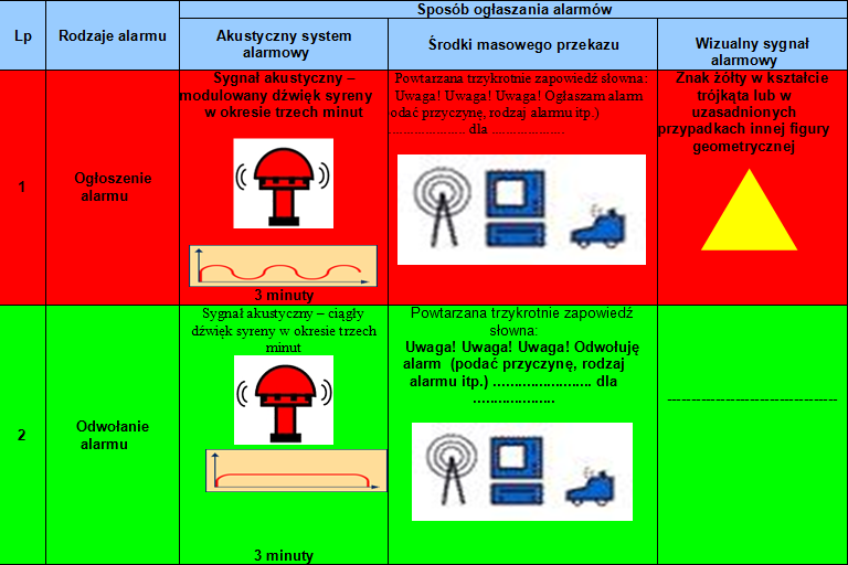 POSTĘPOWANIE PO OGŁOSZENIU SYGNAŁÓW ALARMOWYCH