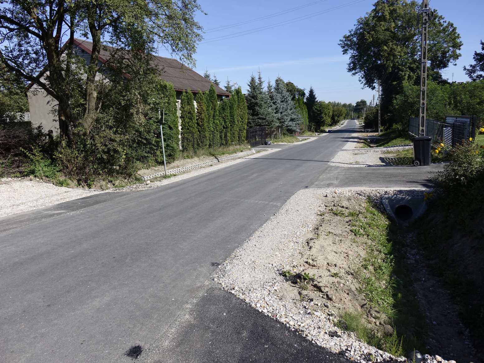 Prace polegały na: * odwodnieniu korpusu drogowego * remoncie nawierzchni - frezowaniu, wyrównaniu masą mineralno-asfaltową i wykonaniu warstwy ścieralnej z betonu asfaltowego * wykonaniu poboczy z kruszywa łamanego na szerokości 0,75 m * przebudowie zjazdów do posesji * oczyszczeniu rowów z namułu * regulacji studzienek dla zaworów wodociągowych i włazów kanałowych.