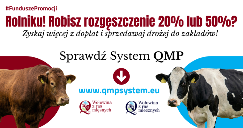 Polskie Zrzeszenie Producentów Bydła Mięsnego, administrator Systemu QUALITY MEAT PROGRAM (QMP), przypomina: jeśli zaznaczysz udział w QMP na wniosku o dopłaty bezpośrednie do 15 maja, otwierasz sobie drogę do konkretnego, dodatkowego wsparcia finansowego.