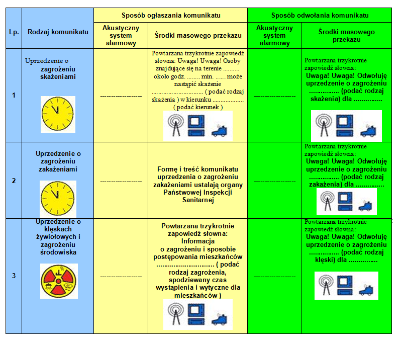Ostrzeganie - działania mające na celu przekazanie komunikatów i informacji uprzedzających o prawdopodobnych zagrożeniach i zalecających podjęcie działań zabezpieczających i ochronnych oraz instruujące o sposobach wykonania takich działań;